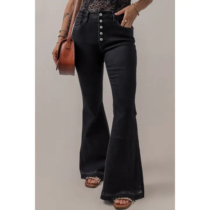 Button front flare jeans