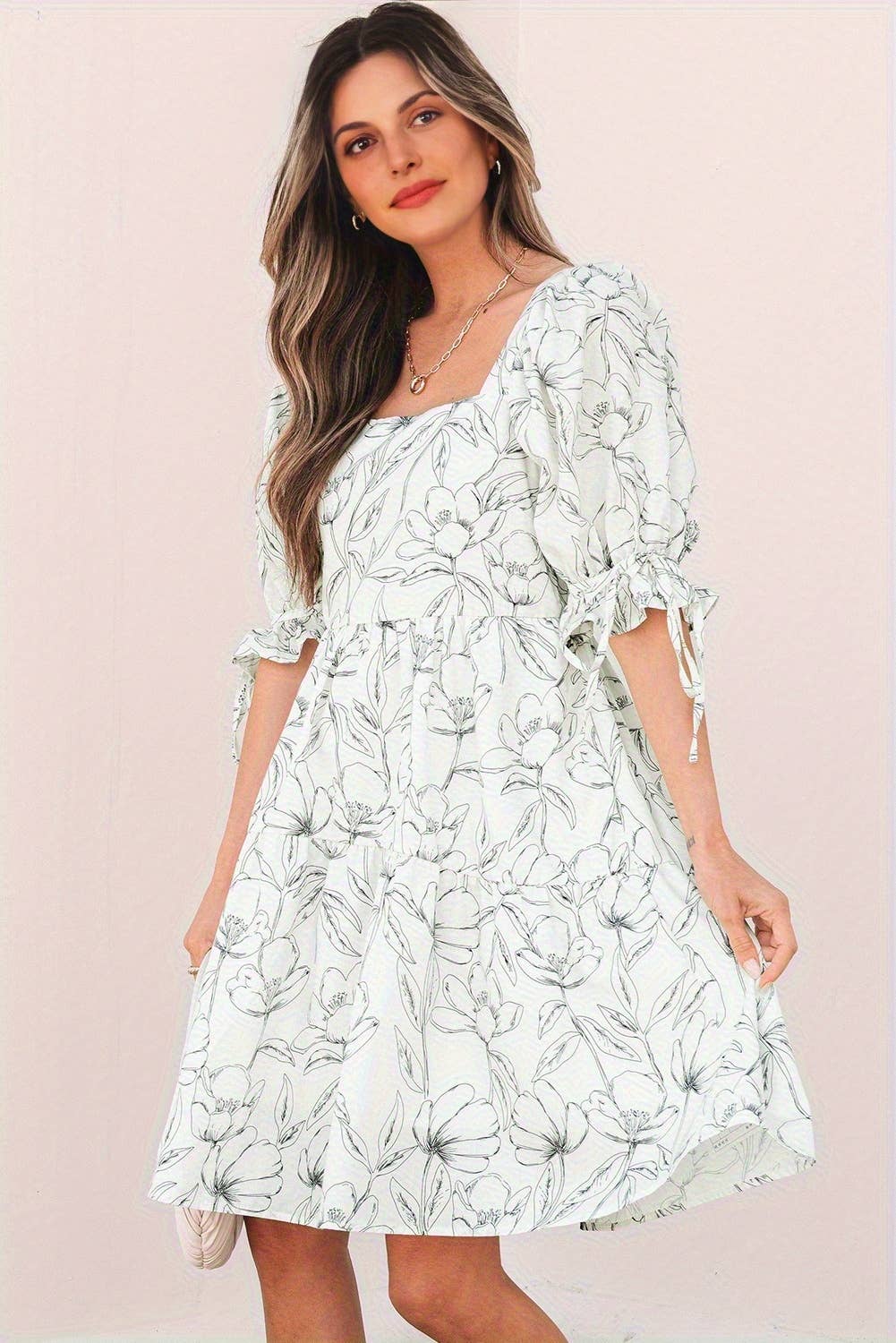 Elevate your style with this Floral Print Square Neck Dress.