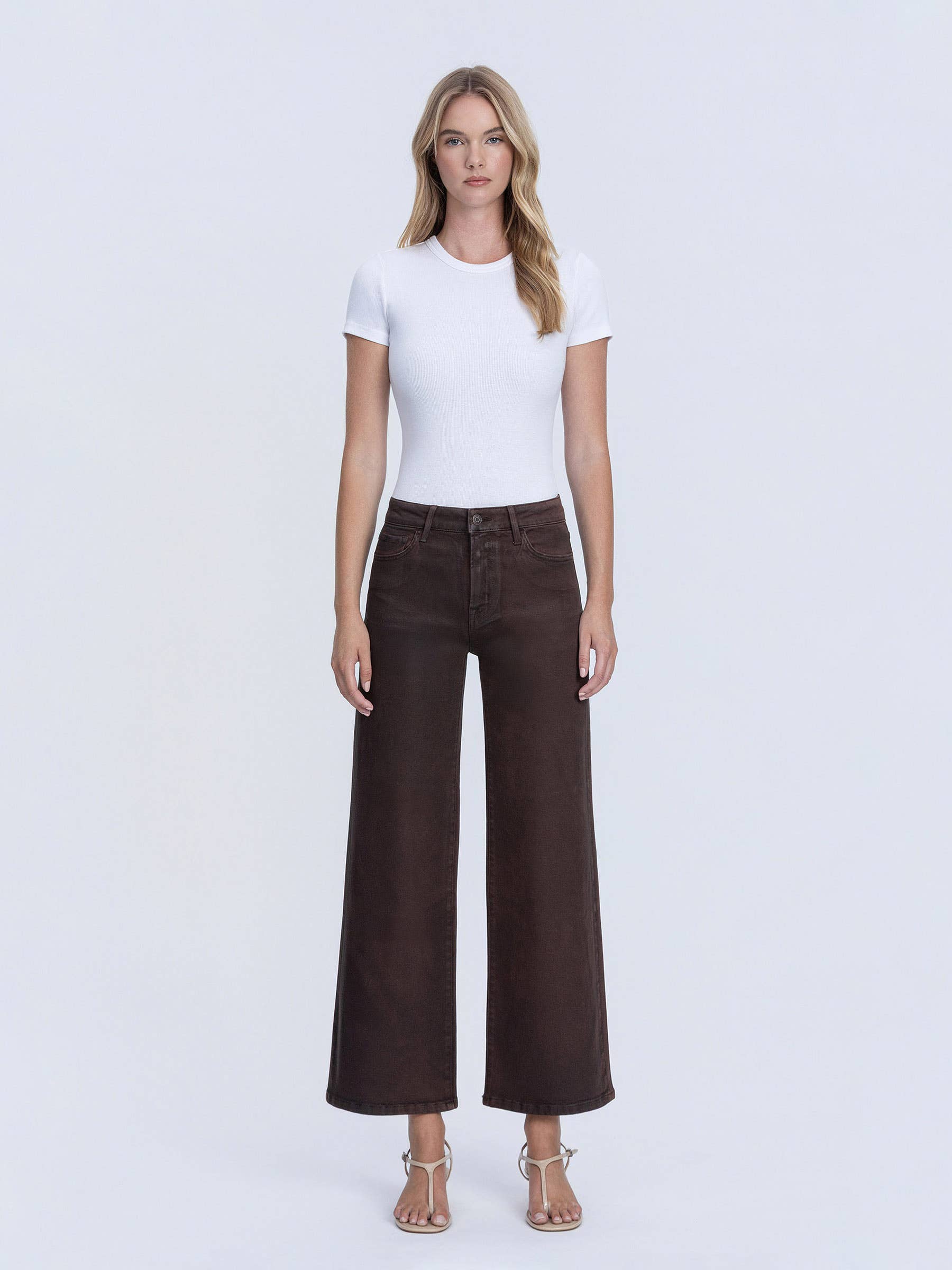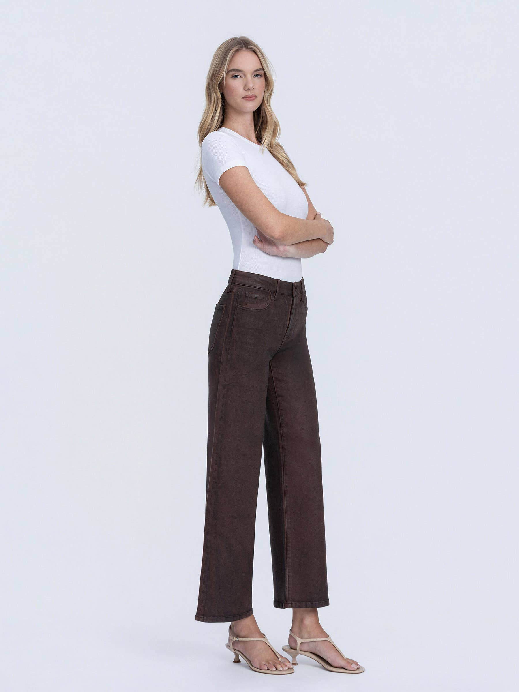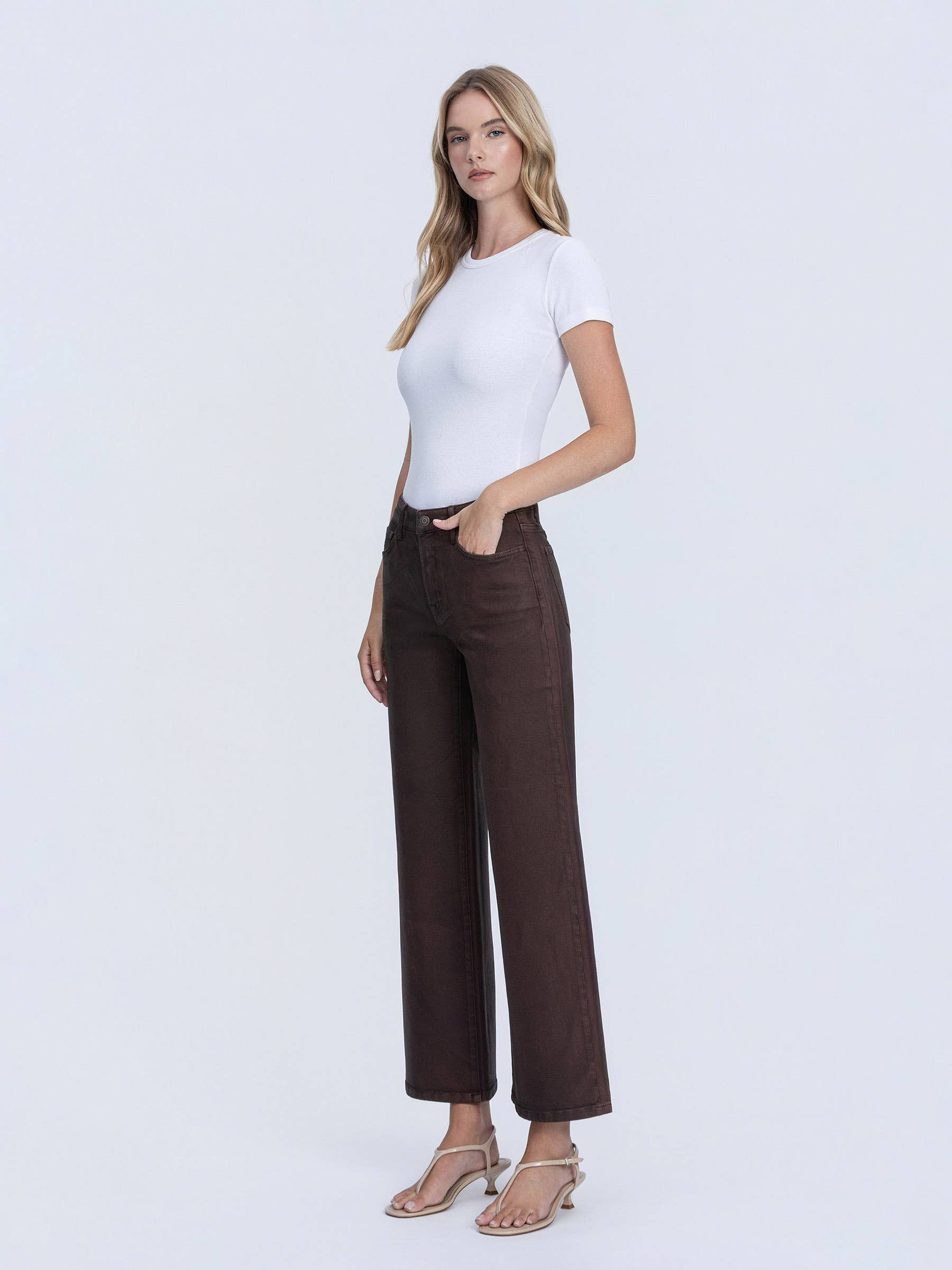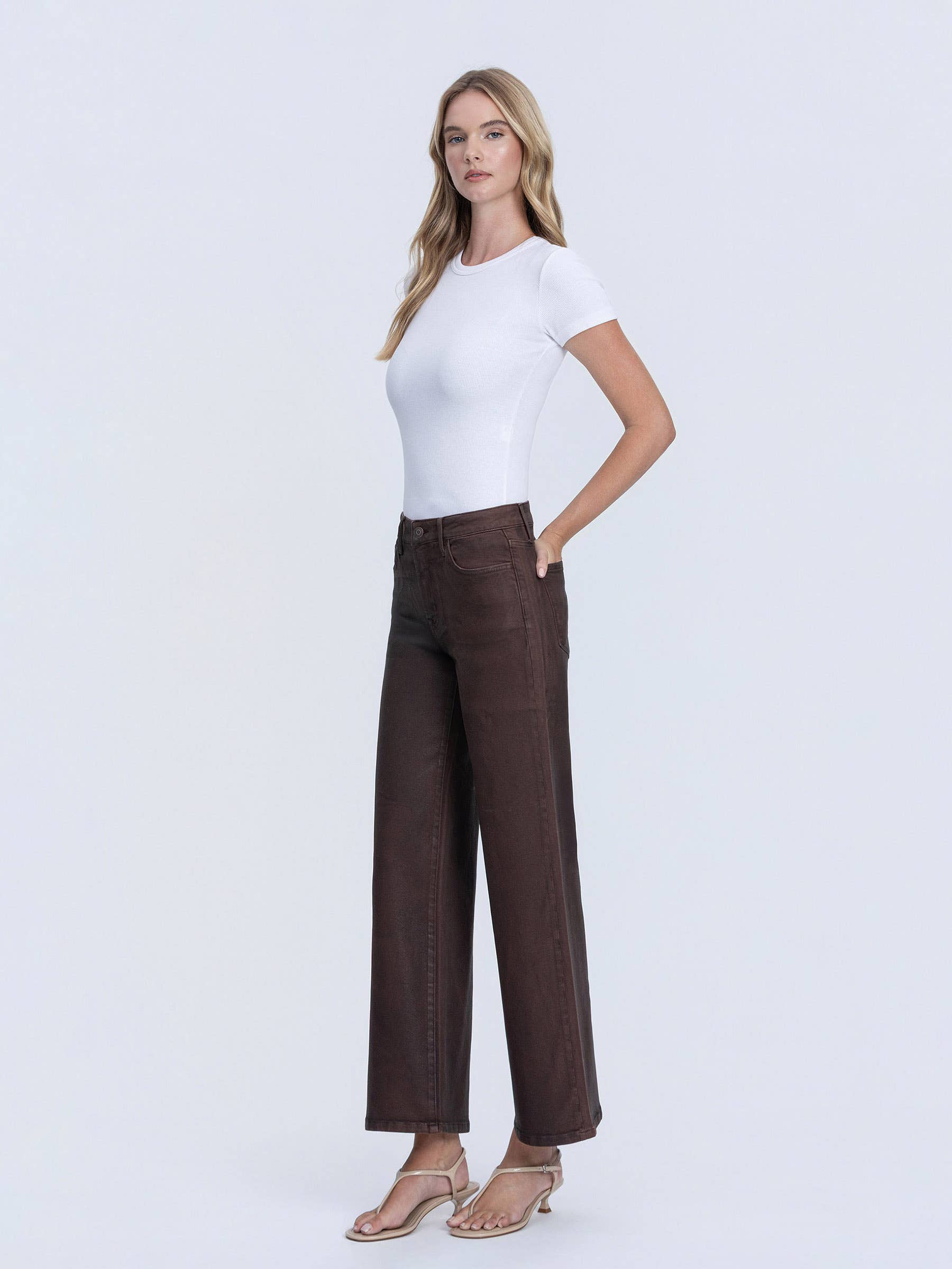 High Rise Chicory Coated Wide Leg Jeans