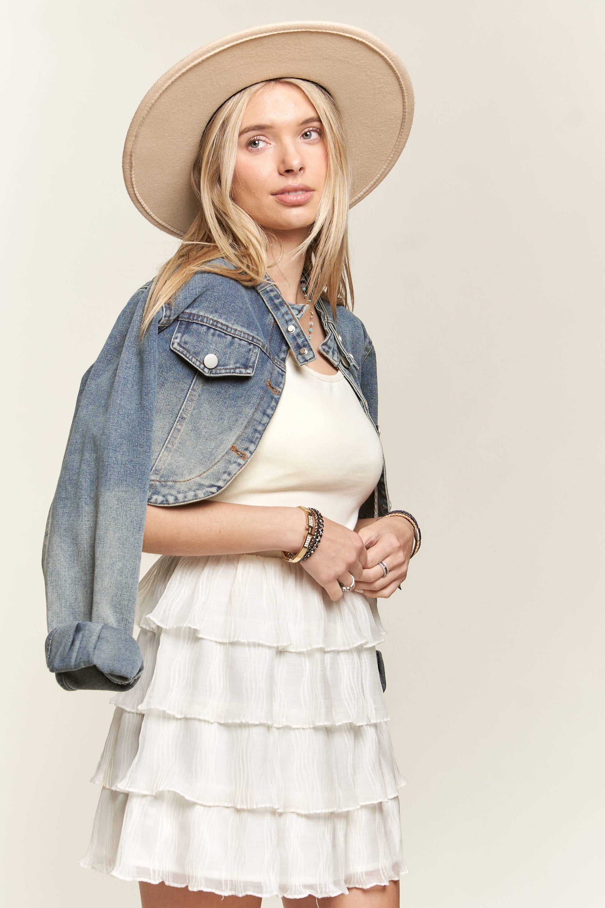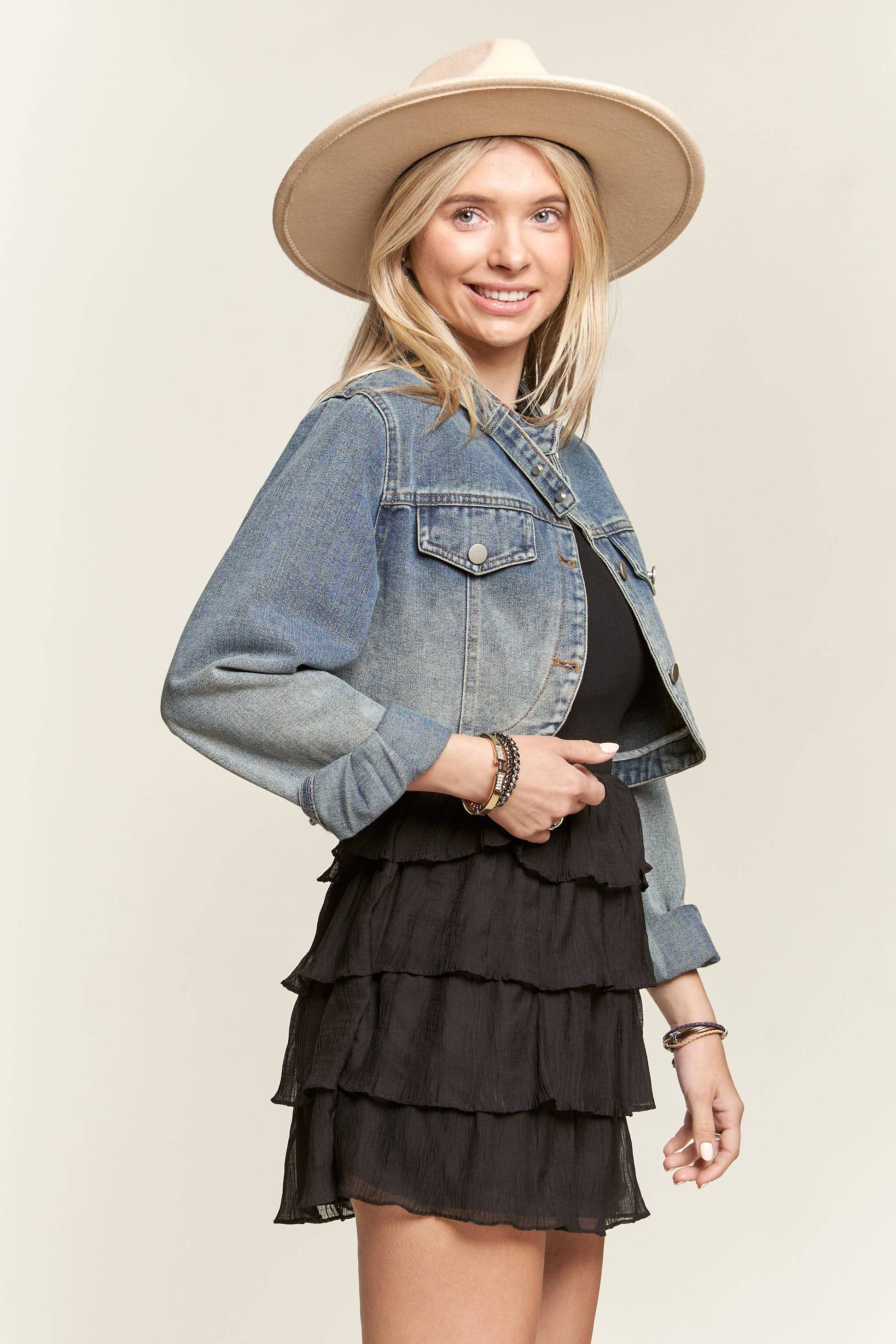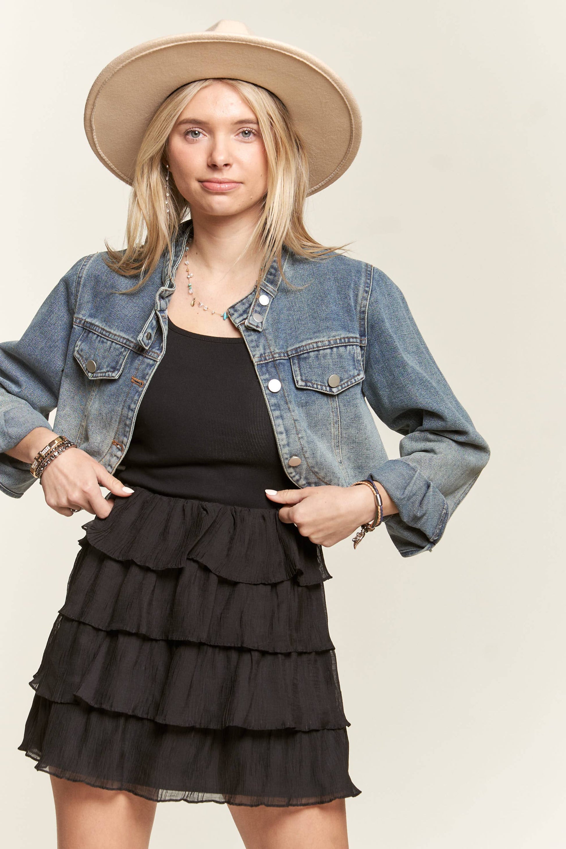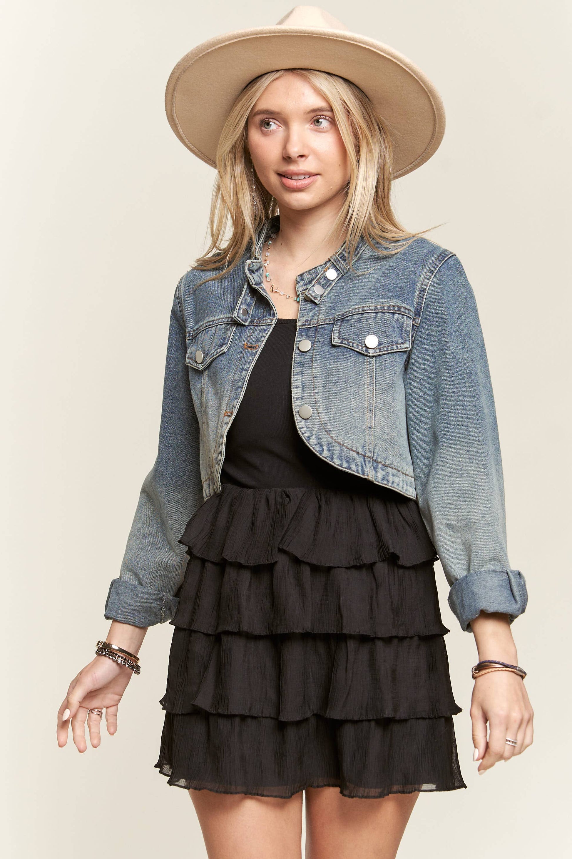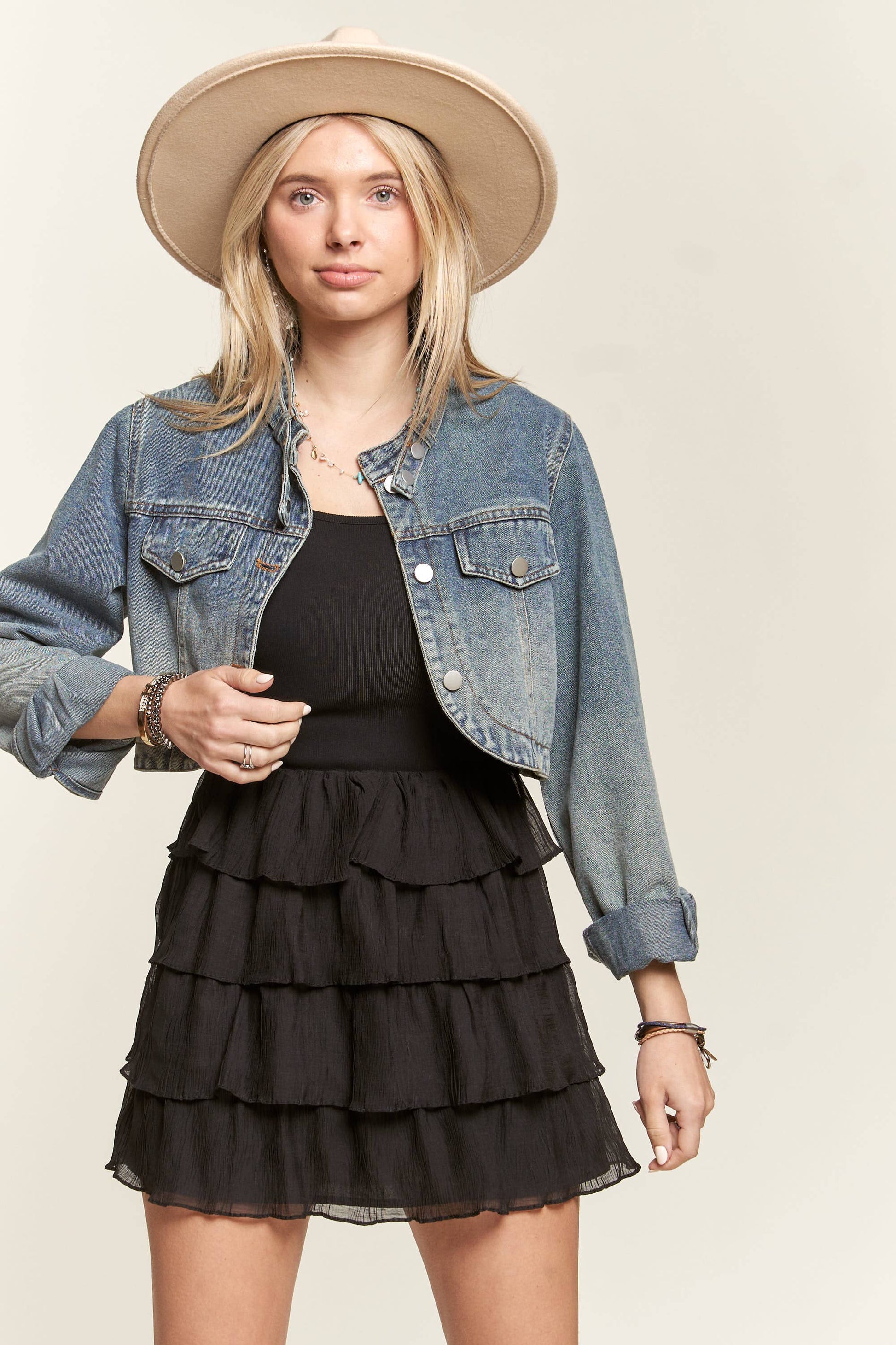 Washed cropped denim moto jacket with round hem 80% COTTON 20% POLYESTER MADE IN CHINA