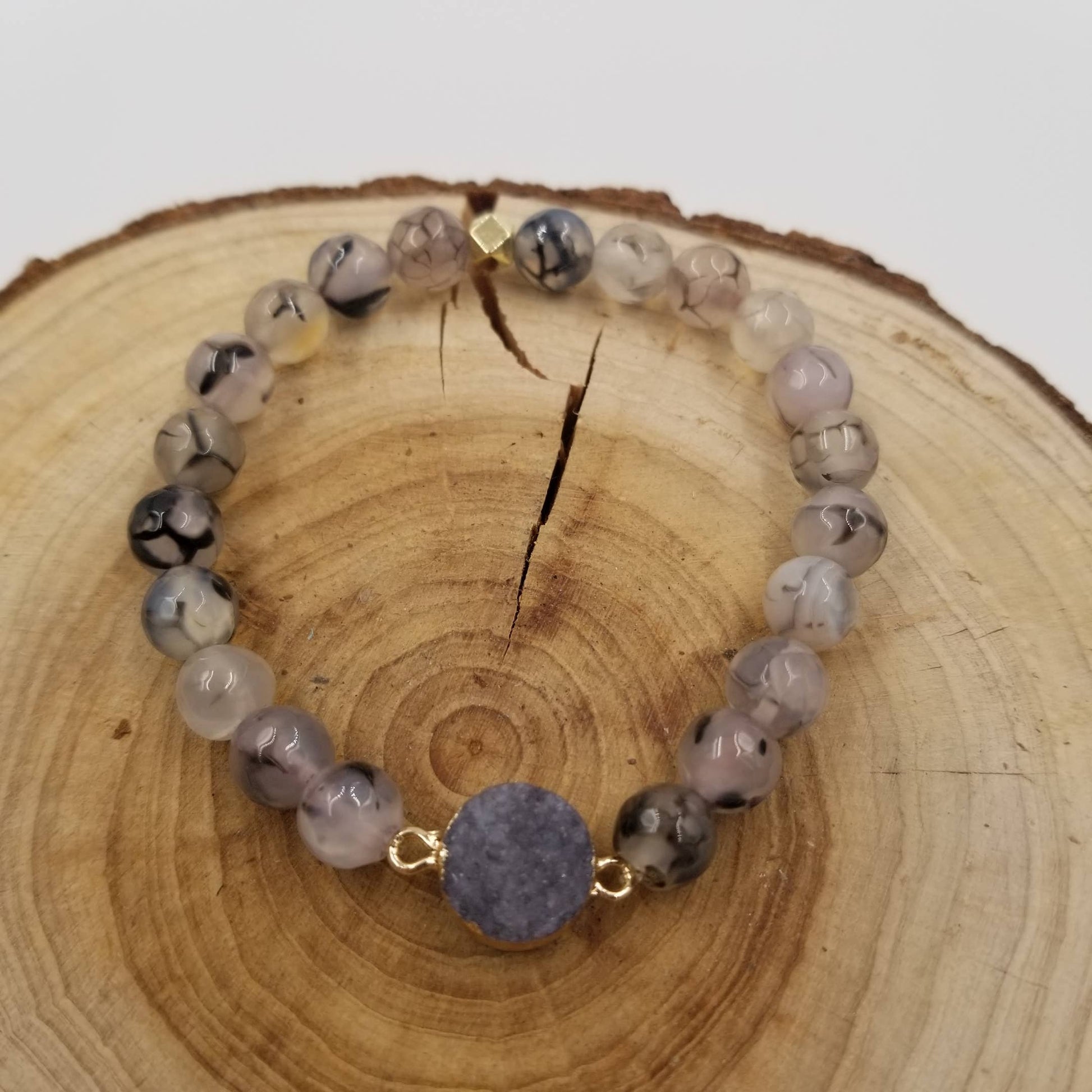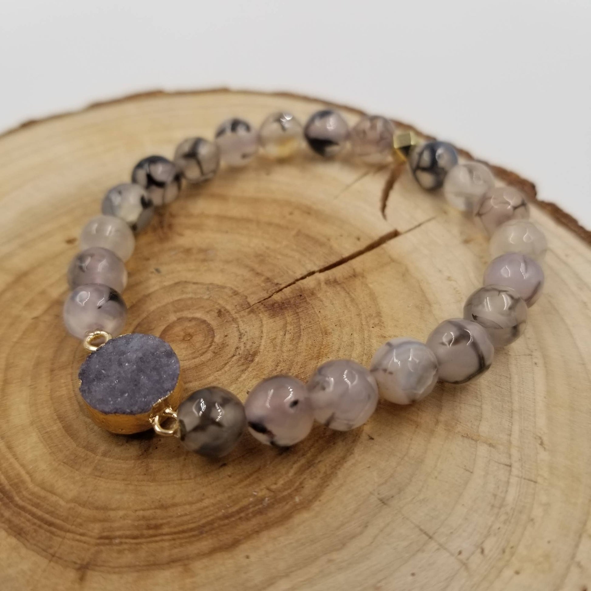 Prehnite Crystal Point Beaded Gemstone Bracelet